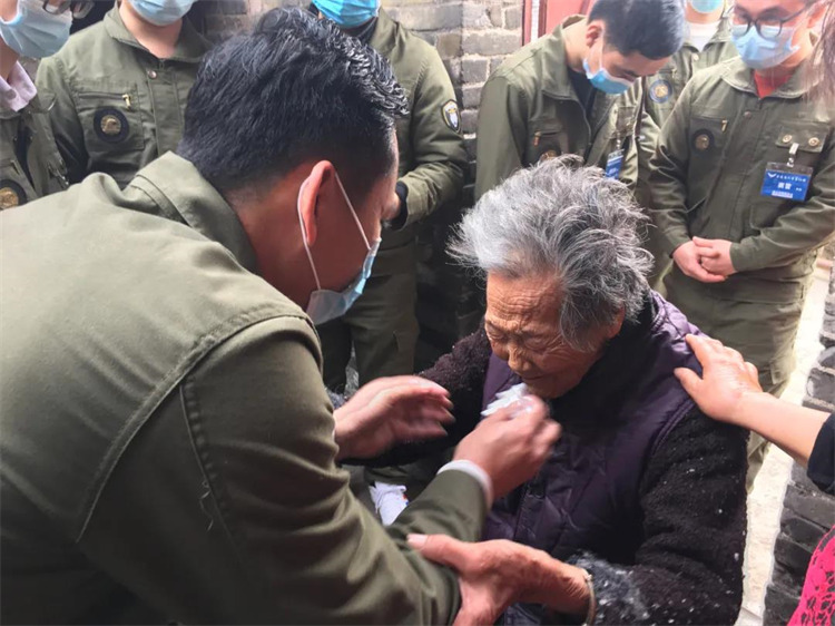 ▲突擊隊(duì)的武一為婆婆擦眼淚。婆婆有3個(gè)女兒1個(gè)兒子,可是她卻只有一個(gè)人住在一間已經(jīng)破敗不堪的小房子里,里面?zhèn)鱽黻囮嚨膼撼?。她頭發(fā)很長(zhǎng),腿有撞傷流血而未清除的淤血。她一直對(duì)我們說感謝,動(dòng)情處熱淚凝眶,見者無不動(dòng)容!與物質(zhì)相比,更多的老人家們更需要的是親人,子女的陪伴和關(guān)愛!一直崇尚以孝為先的社會(huì),原來依然有那么多不為人知的“隱秘的角落”!